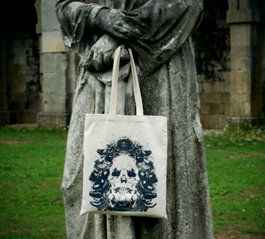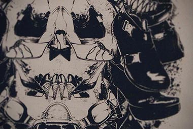 Here’s a little taster of some designs we’ve been working on for an upcoming fashion label, Fischer & Williams, whose website we’ve also recently designed. More designs will be added to their site soon but we just couldn’t wait to showcase our favourite design – a seemingly whimsical illustration of shoes and handbags sure to appeal to the ladies… until you notice the sinister momento mori hidden within! Do make sure to have a peek at some of the other items.